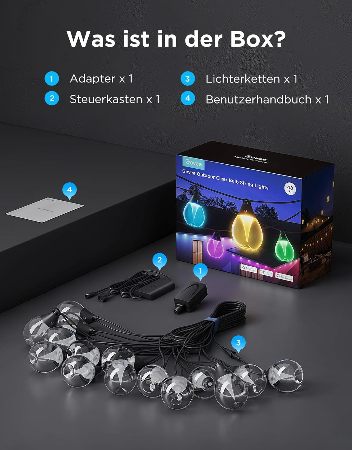 Govee 15m LED Lichterkette Smart RGBICW Clear V2
