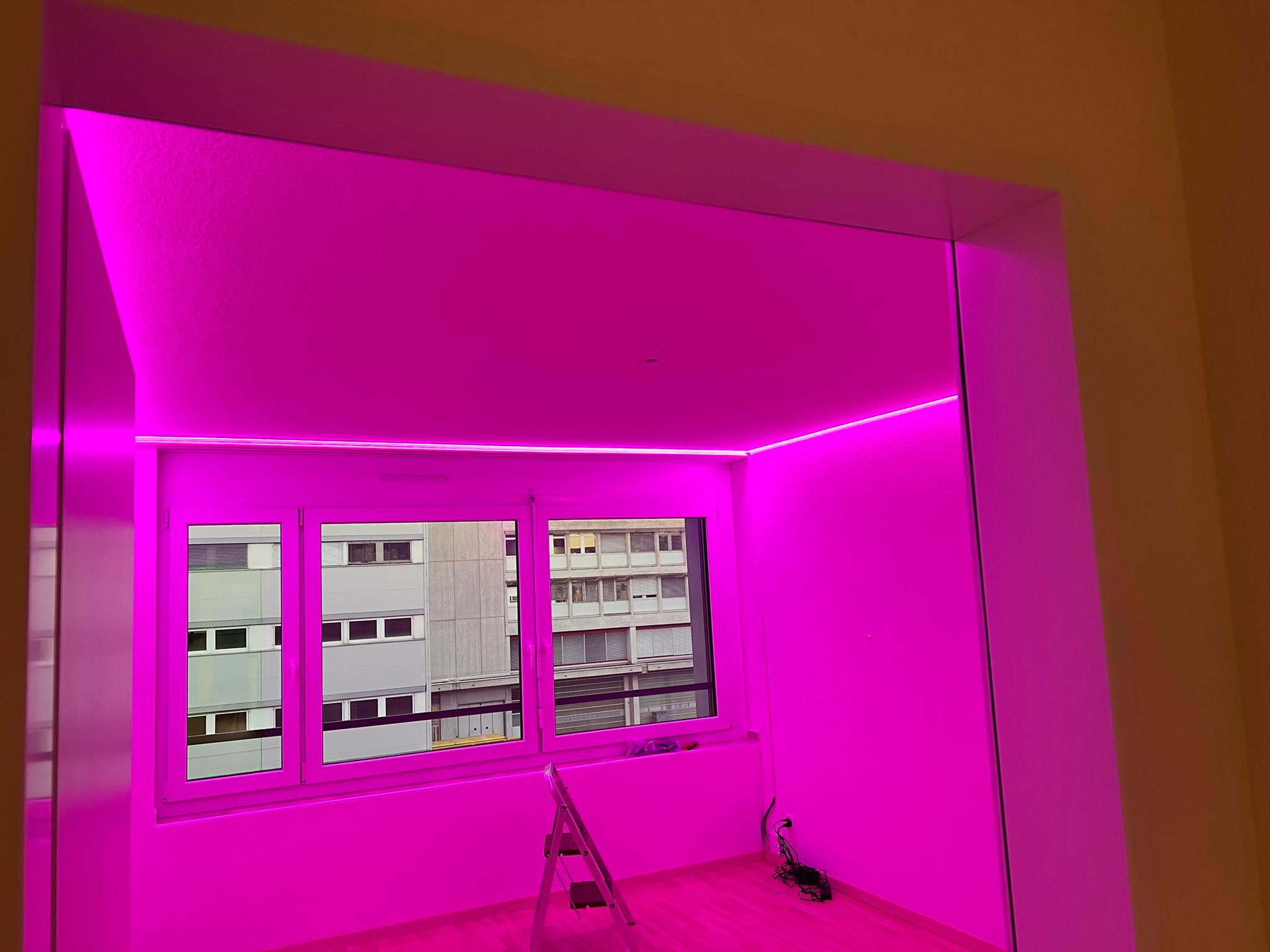 Installation mit Aluprofile (Standard 200cm)Installation mit Aluprofilen ist zu empfehlen. Sehr schöne Lichtverteilung. Die Farben kommen sehr schön zur Geltung und das separate Weiss ist hervorragend. ![]()