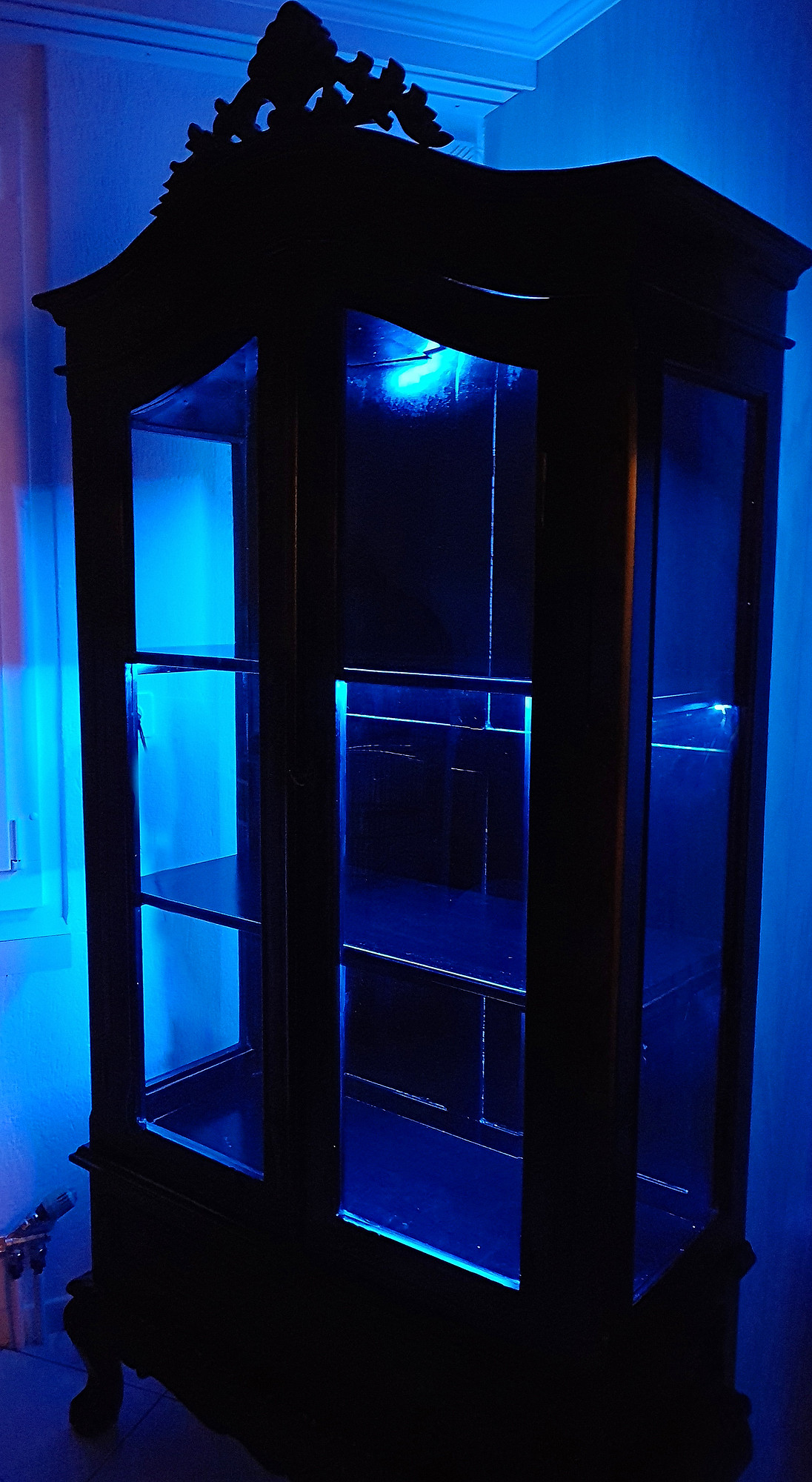Beleuchtung VitrineDas Zusammenlöten der zwei unterschiedlich langen LED-Streifen und Kabel (5-adrig) ist eine Sisyphusarbeit. Daher haben wir das auch gleich bei Lumina-Swiss machen lassen. Der Support ist sehr freundlich und hilfreich. Alle LED-Streifen sind in Standard-, Eck- und Biegprofile verlegt und streuen das Licht schön. Sind schöne Lichtfarben und eine gute Qualität. ![]() ![]() ![]()
