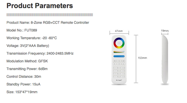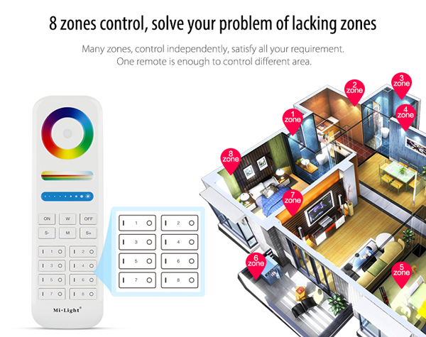 Milight 8-Zonen Fernbedienung RGB+KW/WW (RGBCCT) inkl. Wandhalterung